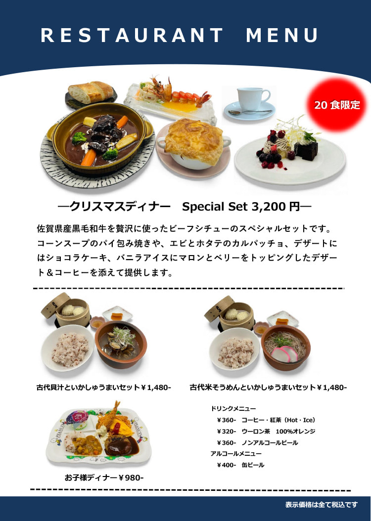 「クリスマスディナー Special Set」を“数量限定”で提供します。