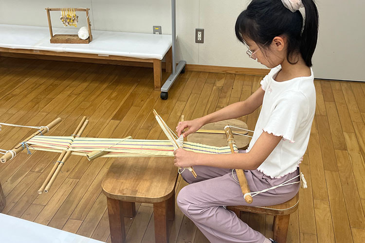 弥生時代の原始機を使って機織り体験を行います