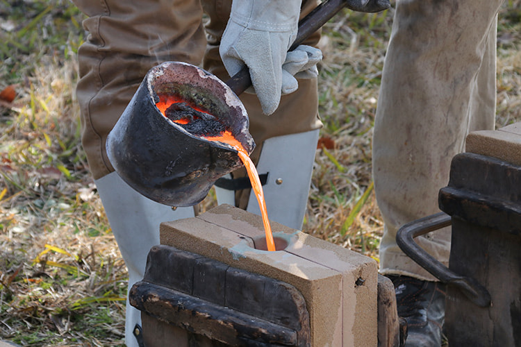 1000℃以上の炉で溶かした青銅で造る原寸大の本格鋳込み体験