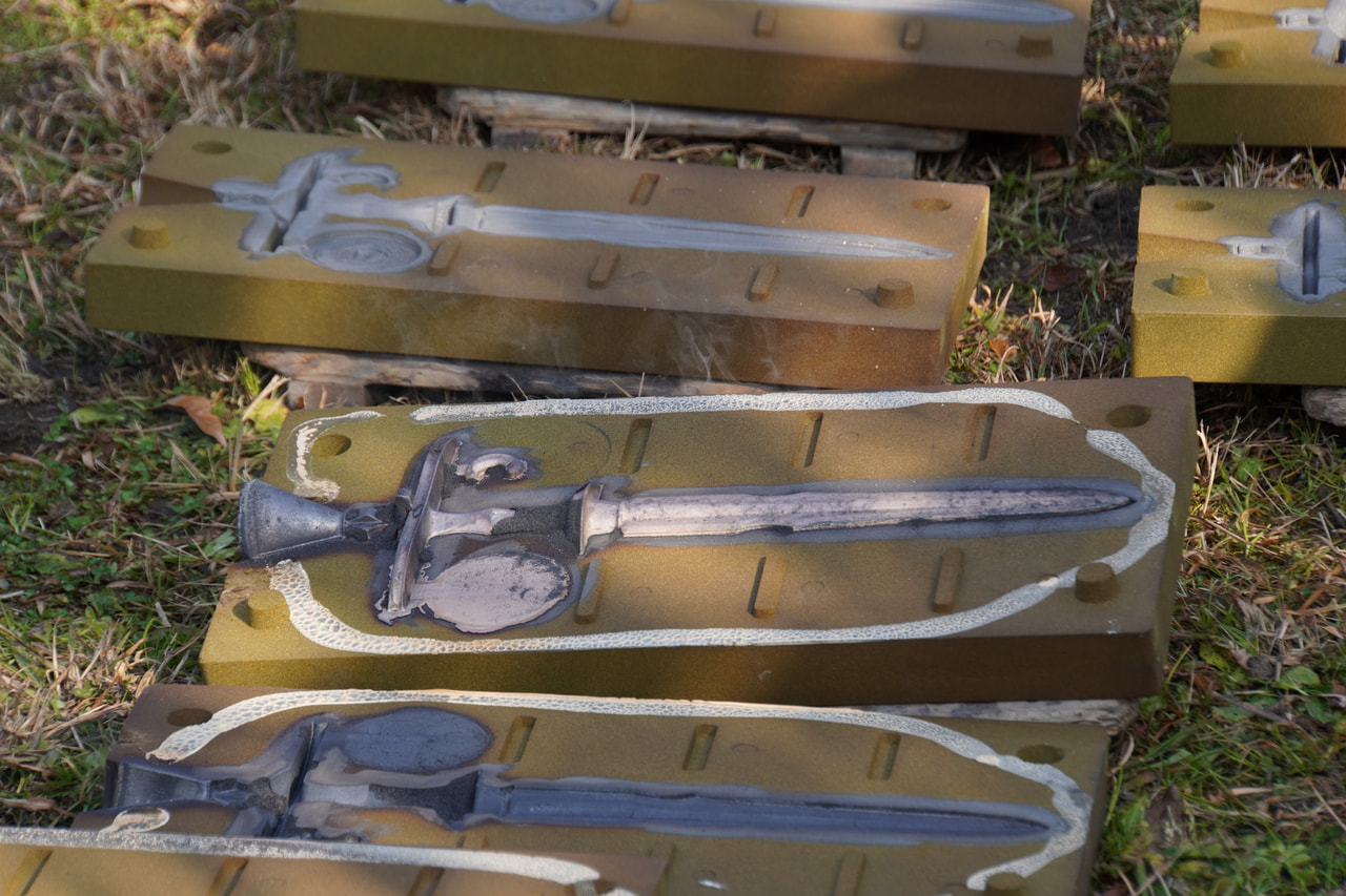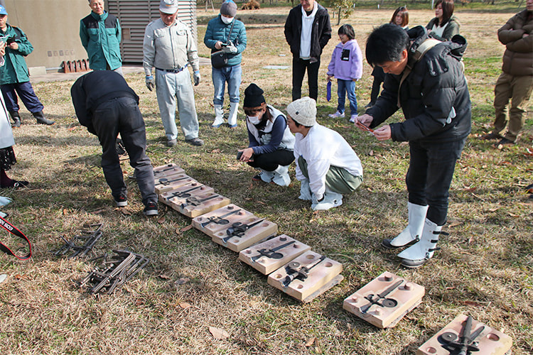 吉野ヶ里遺跡から出土した「把頭飾付細形有柄銅剣」「前漢鏡」「勾玉」を、青銅で作る本格鋳込み体験