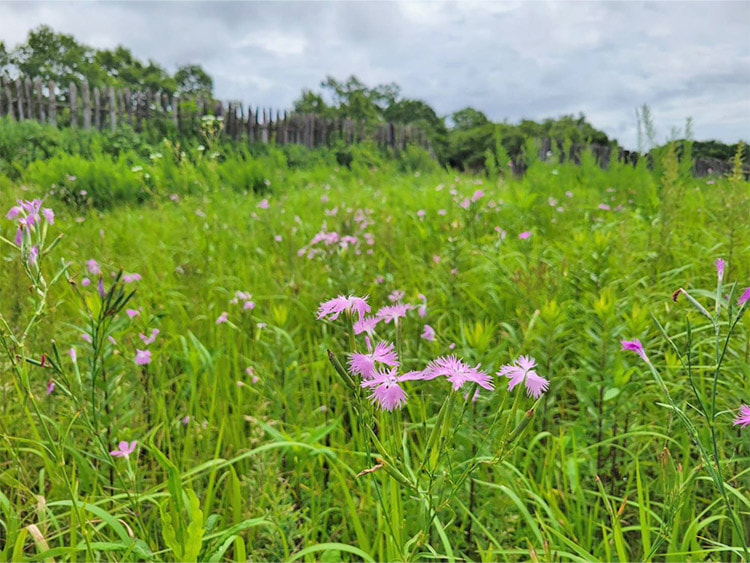 梅雨空の下、健気に咲く可憐なカワラナデシコ。弥生の風景に優しい色を添えています。