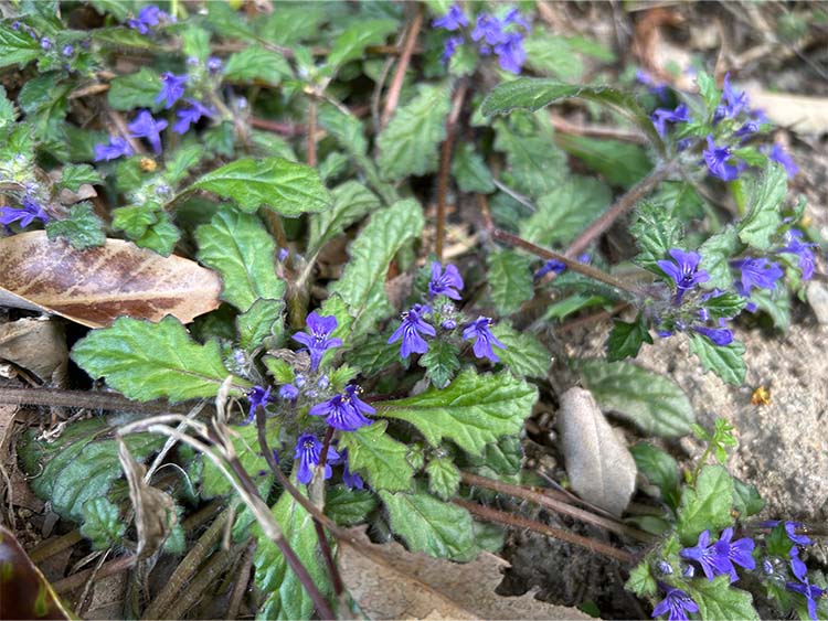 小さくて目立ちにくいですが、地を這うように広がり、青紫色の花が可憐に咲いています。薬草としても効能があり、「医者いらず」とも呼ばれています。