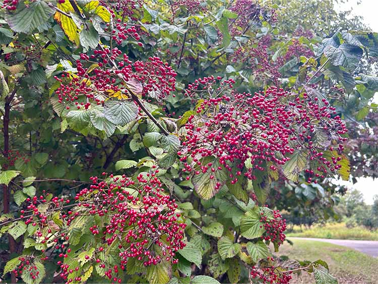 小さな可愛らしい赤い実がたくさん実っています。秋に熟す実は食用にもなり野鳥たちにとってもごちそうです。