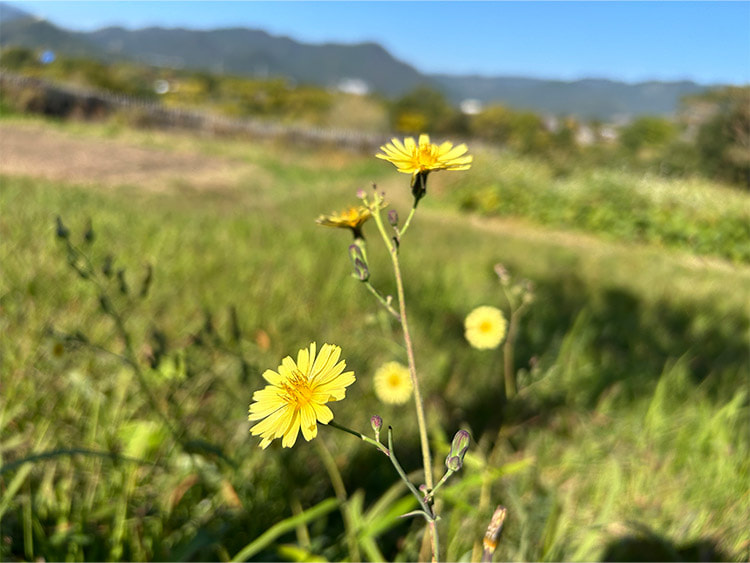 タンポポに似た黄色い花が草丈をスッと伸ばして咲いています。
