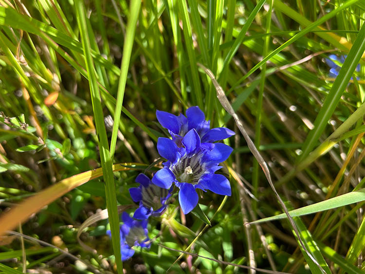 草むらをかき分けると深い青紫色の上品な花が顔を覗かせています。小さいながらも深まる秋を感じさせてくれる草花です。