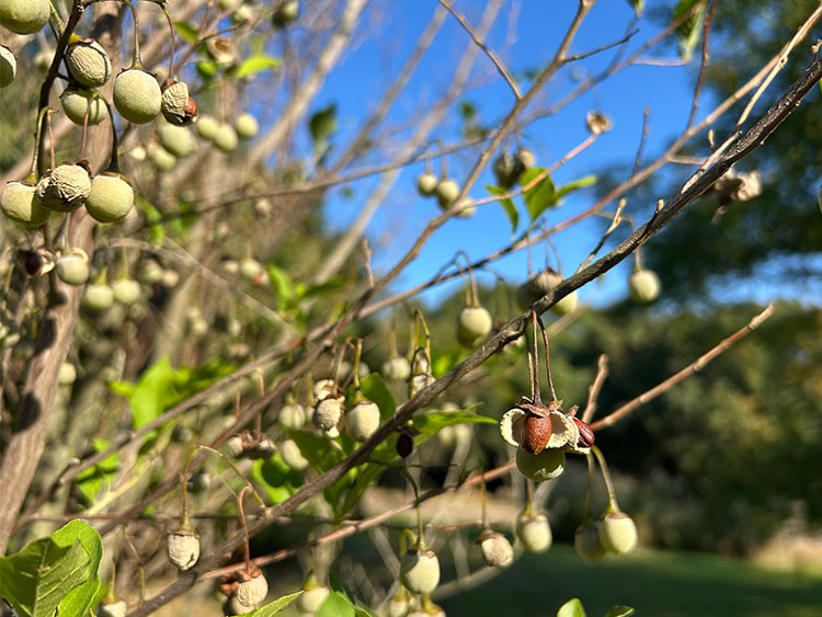 吉野ヶ里の美しい秋を彩るのは草花だけではありません。樹上をよく見ると可愛らしい種や実がたくさんつき、それを求めて様々な生き物が訪れています。今回は園内で見られる木の実の一部をご紹介します。