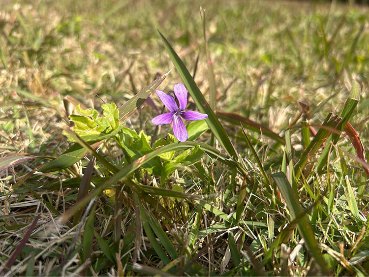 春待たずして咲くスミレを「冬(ふゆ)菫(すみれ)」と言います。スミレの種には、アリが好んで食べる栄養物質(エライオソーム)がくっついています。アリたちに種を運ばせることで、スミレは新たな場所で発芽します。小さいながらも、生き抜く戦略を備えている植物です。