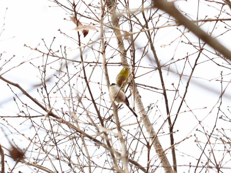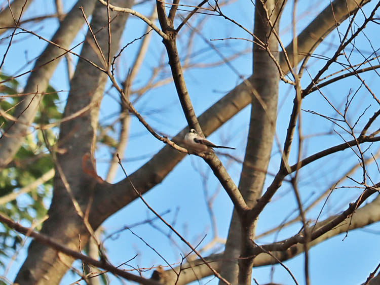 丸い体に長い尾羽がついています。とってもかわいい!北海道に生息するシマエナガは有名ですね。大きさや体形はほぼ一緒ですが、顔の色合いが異なります。園内では木々の間をせわしなく飛び回っています。