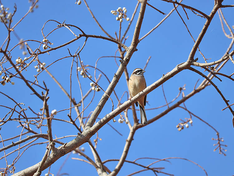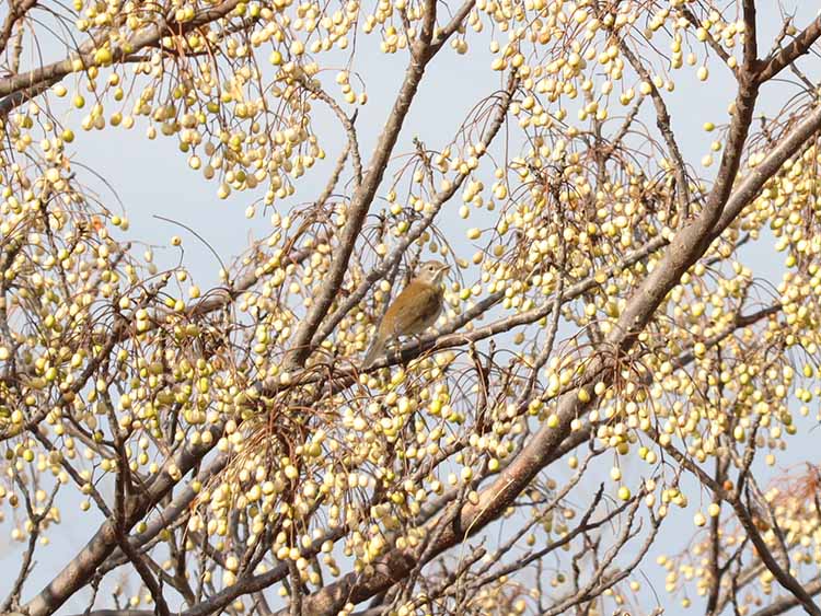 冬になると中国やサハリンから渡ってきます。名前の通り、白いお腹が特徴です。センダンの実をつついていました。すると大きな口を開けて、なんと丸呑み!大丈夫?(センダンの実は有毒のため、食べられるのは鳥類のみのようです)