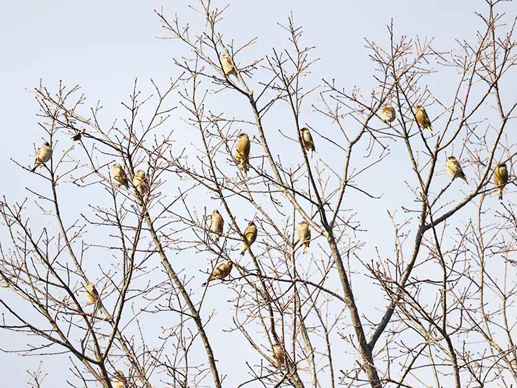 園内には群れで行動する野鳥が多くみられます。樹上や草地などに目を向けてみましょう。群れで移動する野鳥も多く、その愛らしい姿に癒されますよ。