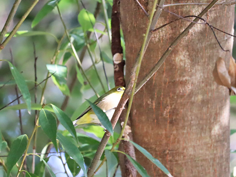 名前の由来となっている目の周りの白い縁取りがオシャレですね。美しい黄緑(ウグイス色)の体色も、この小さな鳥の魅力をさらに高めています。蜜を求めて、花から花へ軽快に飛び回ります。
