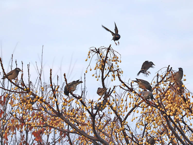 夜になると大集団を作って眠る “ねぐら入り”が知られています。天敵から身を守るための一手段で、近年、都市部でも多く見られるようになりました。