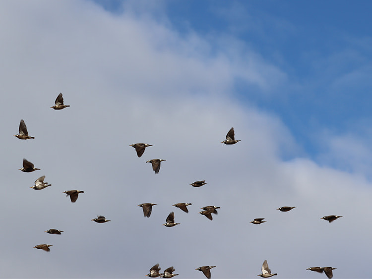 ◆青空を飛ぶムクドリの群れ