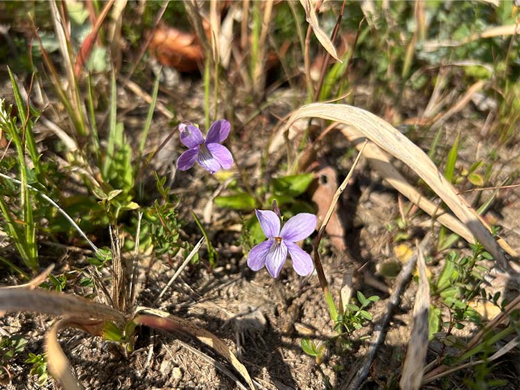 陽当たりの良い、暖かい場所でちょこんと咲いています。薄紫色の花が可愛らしいです。
