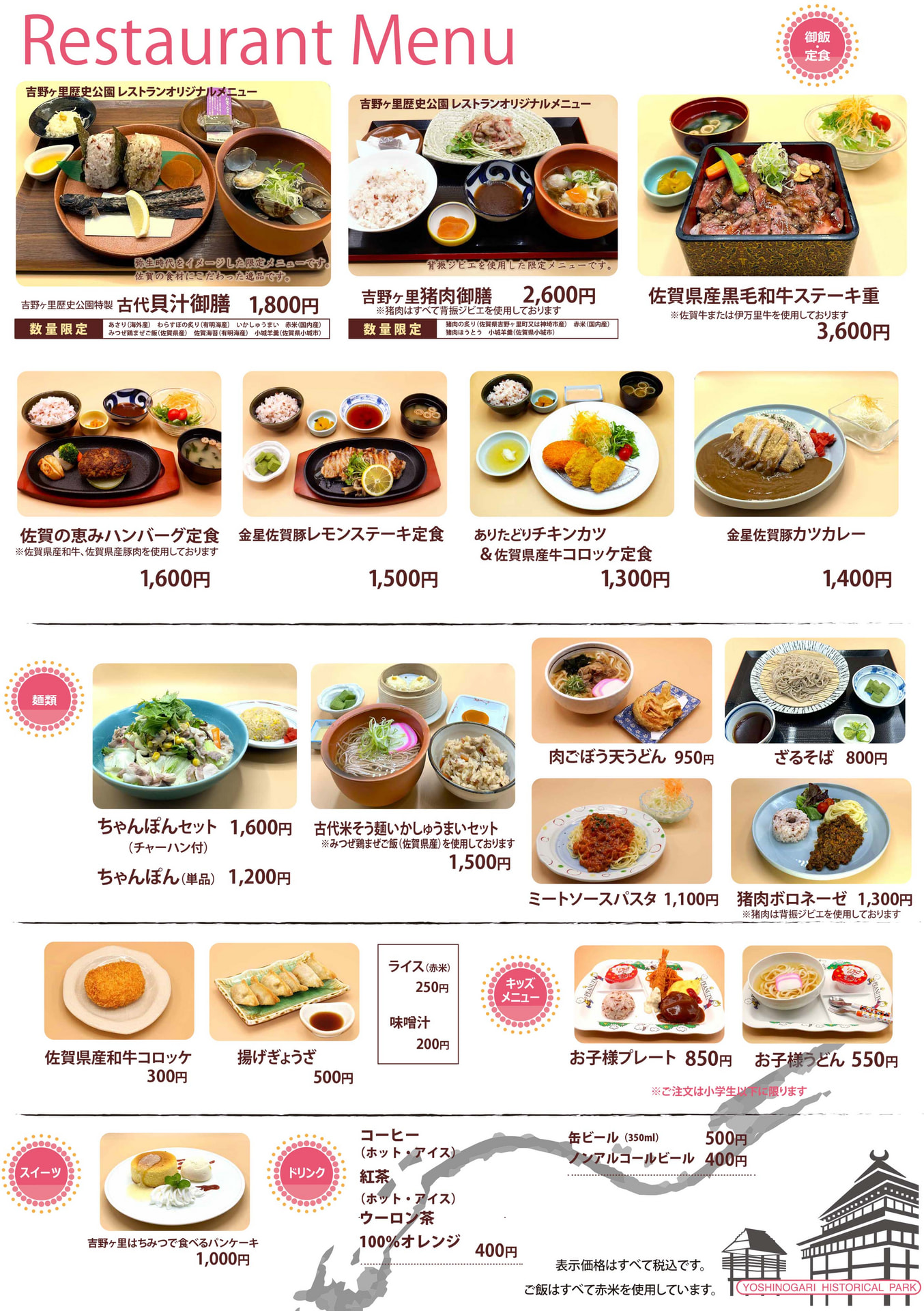 東口 レストラン御食事メニュー ⇒【メニュー表】
