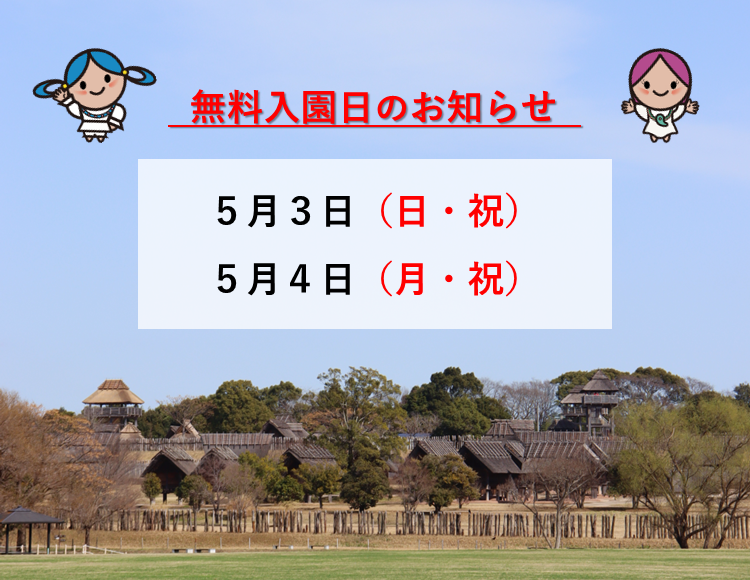 吉野ヶ里歴史公園では、下記の日の入園料が無料となります。